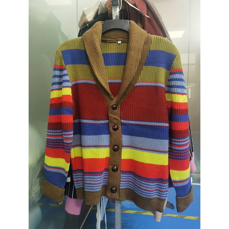 elegant retro button up slightly stretch cardigan jacket mens casual color block vintage style v neck sweater cardigan coat for fall winter details 4