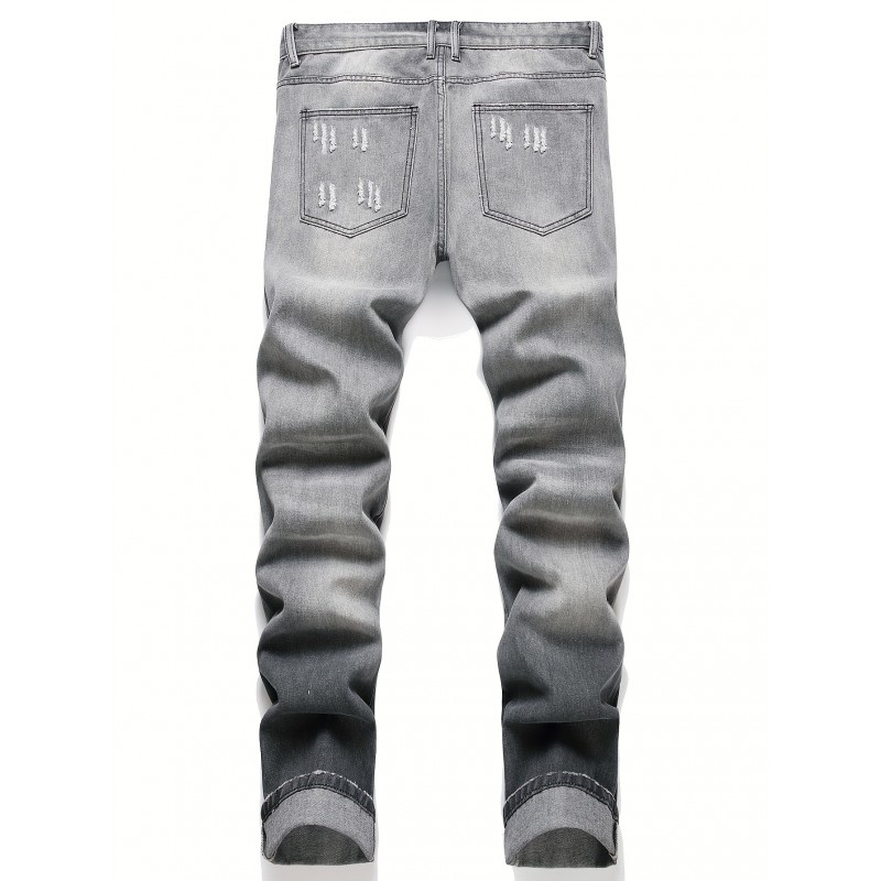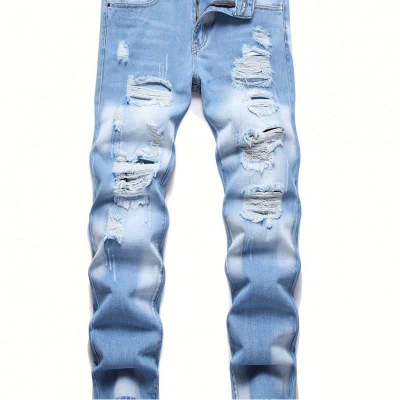 mens regular ripped jeans casual street style distressed denim pants details 1