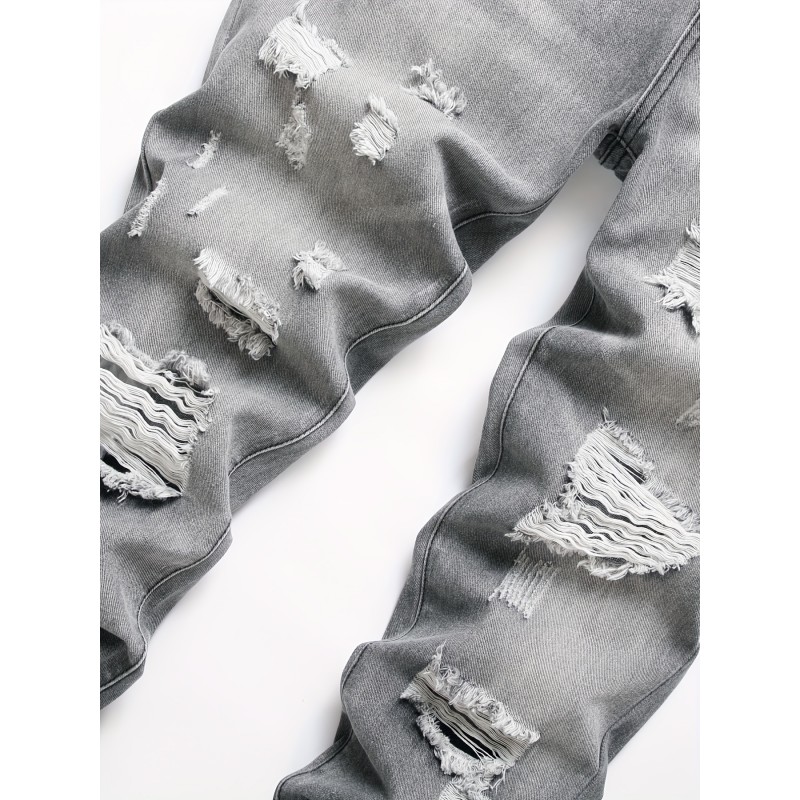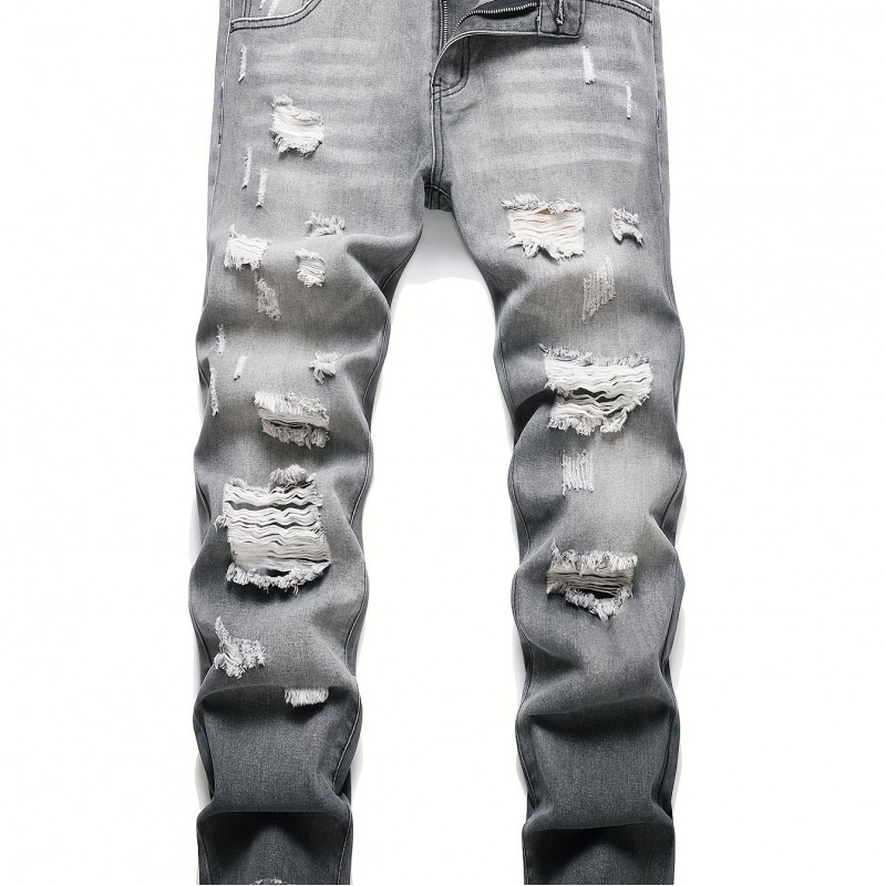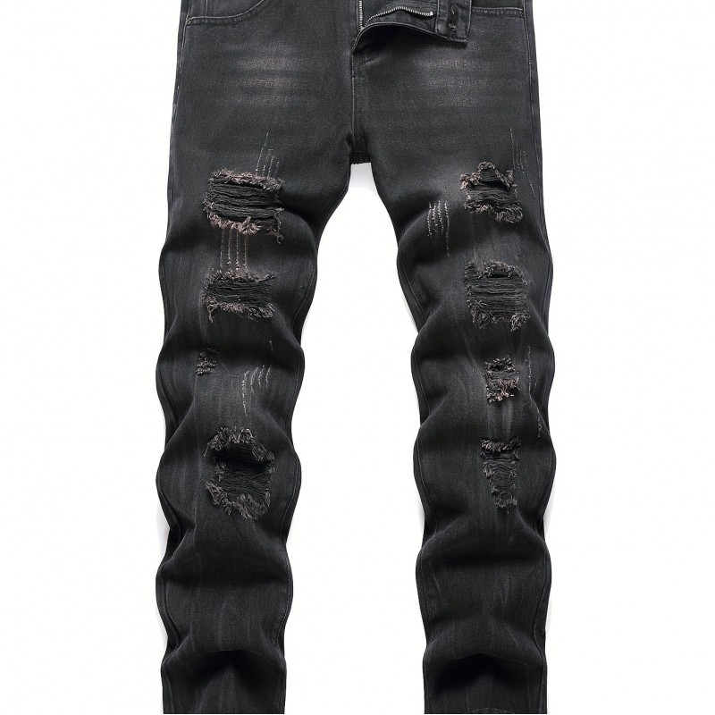 mens regular ripped jeans casual street style distressed denim pants details 2