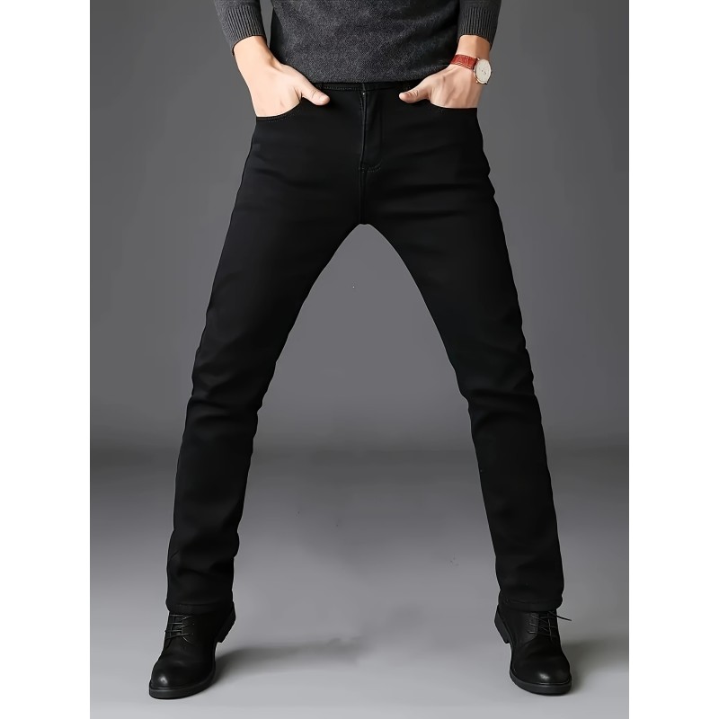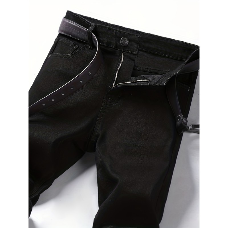 Men's Semi-formal Jeans, Classic Design Straight Leg Regular Jeans For Business