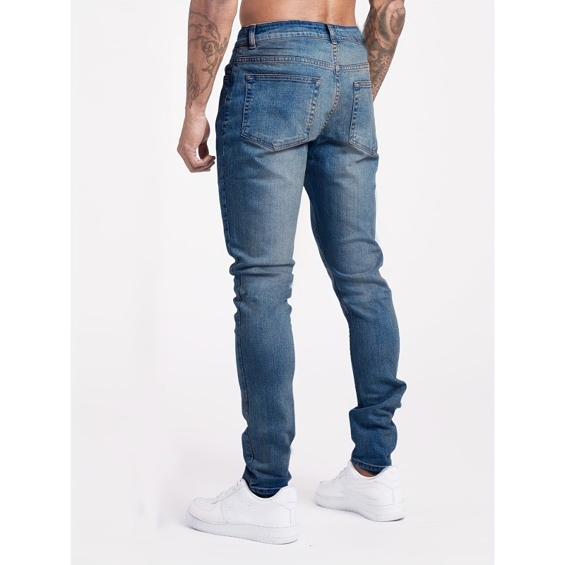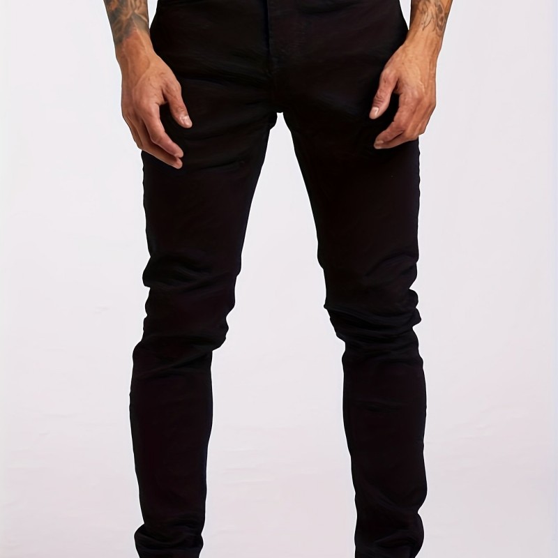 Slim Fit Jeans, Men's Casual Street Style Solid Color Mid Stretch Denim Pants For Spring Summer