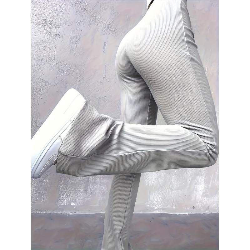 Solid Ribbed Flare Leg Pants 2 Pack, Casual High Waist Slim Elastic Pants, Women's Clothing